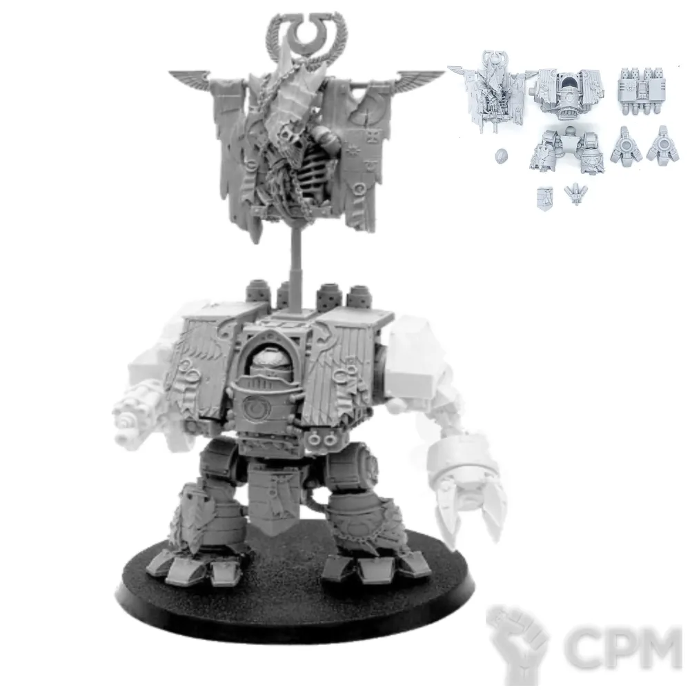 Собакен пришел. На качество литья не буду жаловаться - смола и крупные детали дружат никак. Но недостающие детали - это нехорошо. Точно нет запалов на втором инферно кэнон, нет второй крышки плеча над сервитором, нет одного места крепления силового кабеля к орудию и вызывает подозрения одиночная деталь чьё назначение я пока не нашел.