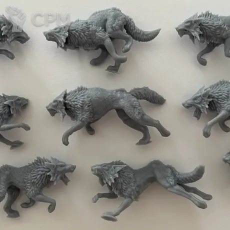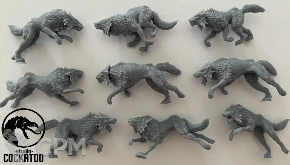 Фотополимерная печать (миньки и топперы) выполняется с разрешением 12к из ударопрочной ABS смолы.