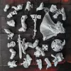 Хорошее качество литья, требующее незначительной обработки перед склейкой. На 5 миньках было пару маленьких пузырей, лишь один на видном месте, подбородок у вампирши превратился в продолжение рта). Отправка, упаковка без нареканий.