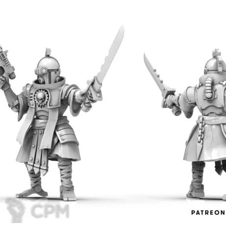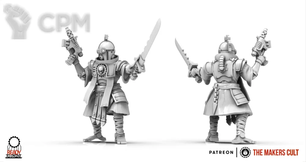 Хорошая печать, однако не идеальная. Из минусов: миниатюры чуть меньше современного стандарта gw. На столе заметить не просто, но при наглядном сравнении разница видна хорошо. Однако, для подвальных сходок настольщиков вполне качественно и приятно глазу. Из-за разницы в размере есть опасения, что наборы вооружения могут не совпасть с gw-шной основой, но за это ручаться не могу.