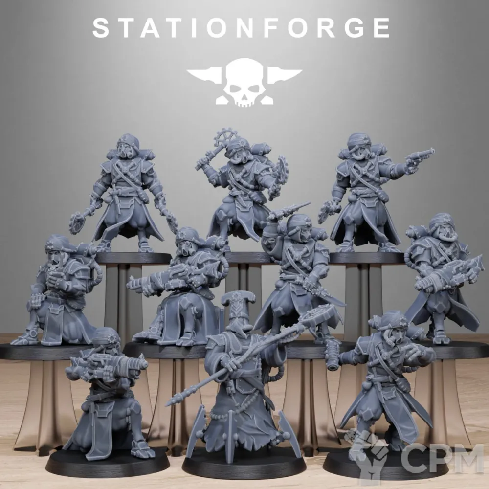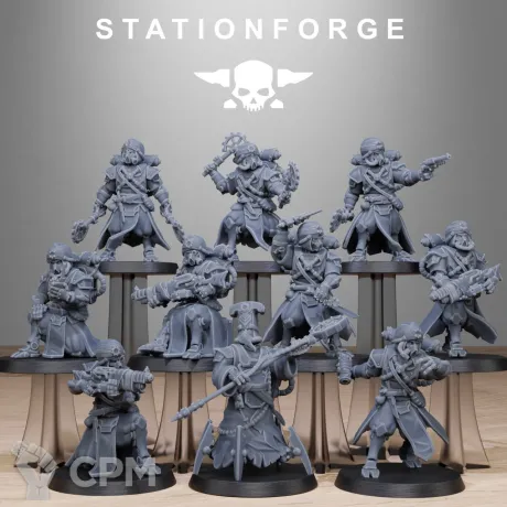 10 миниатюра. База в комплект не входит. Возможна печать дополнительных миниатюр или битсов.