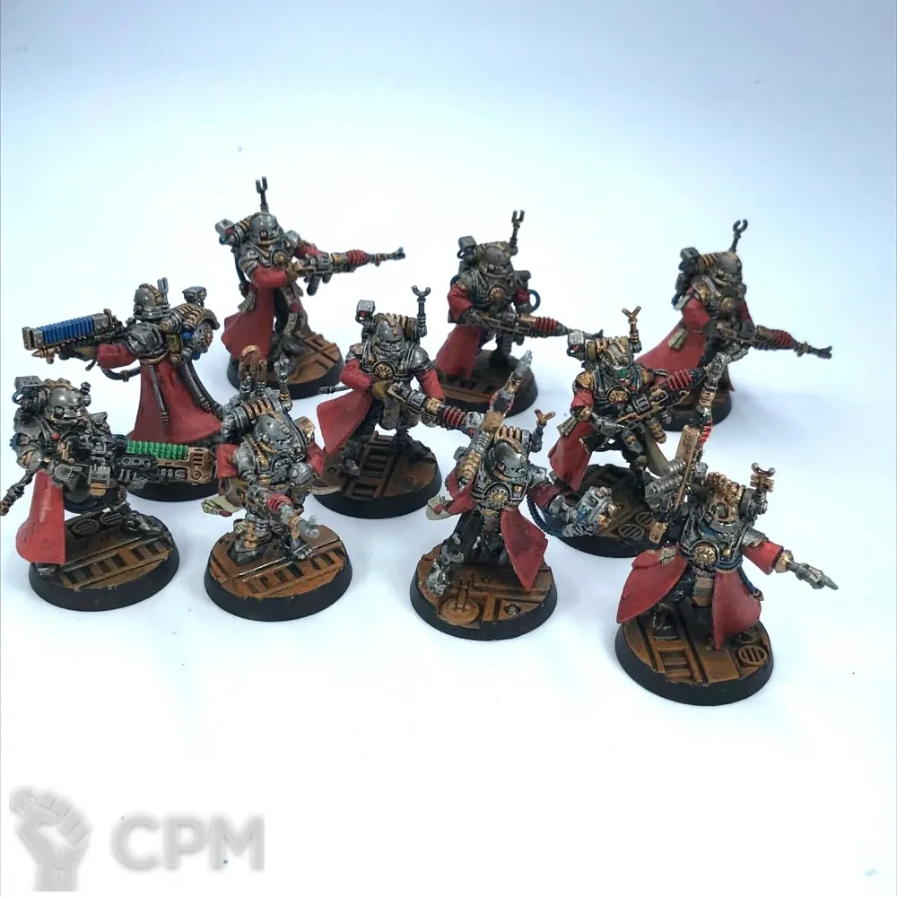 Skitarii Vanguard – это когда техножрецы берут обычного солдата, вырезают из него все «лишнее» (вроде страха, инстинкта самосохранения и способности задавать вопросы), напичкают радиоактивными игрушками и с гордостью объявляют: «Да это же элитный авангард!» Эти ходячие источники фонового излучения шествуют по полю боя, щедро одаривая всех вокруг «благословением» своего радиационного aura – потому что зачем маскироваться, если можно просто гарантировать, что никто не захочет подойти к тебе ближе, чем на тридцать метров?