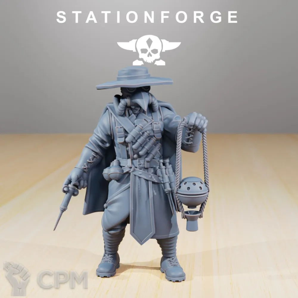 Сначала руки дошли до аптекаря. Долго искал на картинках в интернете именно того и в той позе, который пришел мне. Так и не нашел. Ладно, подумал я, может плохо искал. В целом похож. (стоит по другому, на фартуке впереди еле отпечатан один нож, хотя должно быть 2 хорошо видных. Впереди печати чистоты свисают с баночек в оригинале, тут банки под ними и их не видно. Лупа на другой стороне шеи, чуть другой хирургический инструмент на ранце, нет чистого наплечника на левое плечо, чтоб наклеить туда декаль ультрамаринов).