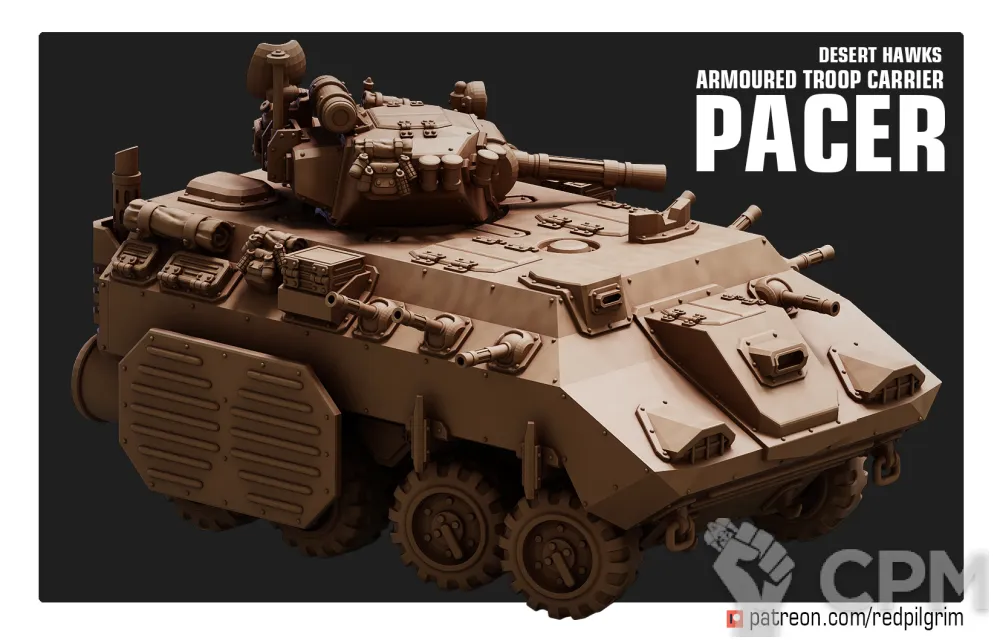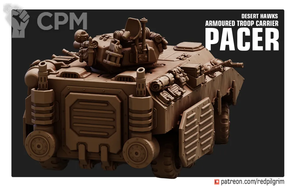 Альтернативная химера. БТР "Иноходец". Основная задача этой машины - доставка пехоты на рубеж перехода в атаку, а также поддержка наступающих отрядов огнем своего крупнокалиберного орудия и курсовых пулеметов. Пустынные Ястребы предпочитают колесный вариант этой машины, высоко оценивая ее скорость и маневренность. Броня у "Иноходца" не самая крепкая, поэтому полковые инженеры нередко усиливают защиту дополнительными бортовыми экранами. Данный БТР - это рабочая лошадка пехоты, самая распространенная боевая машина полков Пустынных Ястребов.