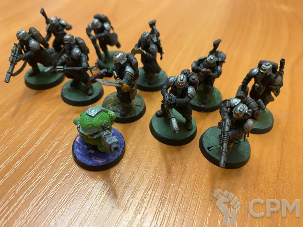 Плюс - отправка очень быстрая. Остальное, к сожалению, минус. Брал исключительно хаос спавнов. Разочарован. В описании не указано, что это самоделка из битцов литья и расплавленных спруек... часть пришла уже сломанная, часть с отклеенными базами из картона? Если разобрать всех на битцы и долепить зеленкой, можно попробовать одного нормально слепить... но они все залиты грунтом и краской, что окончательно отбивает желание что-то с ними делать...