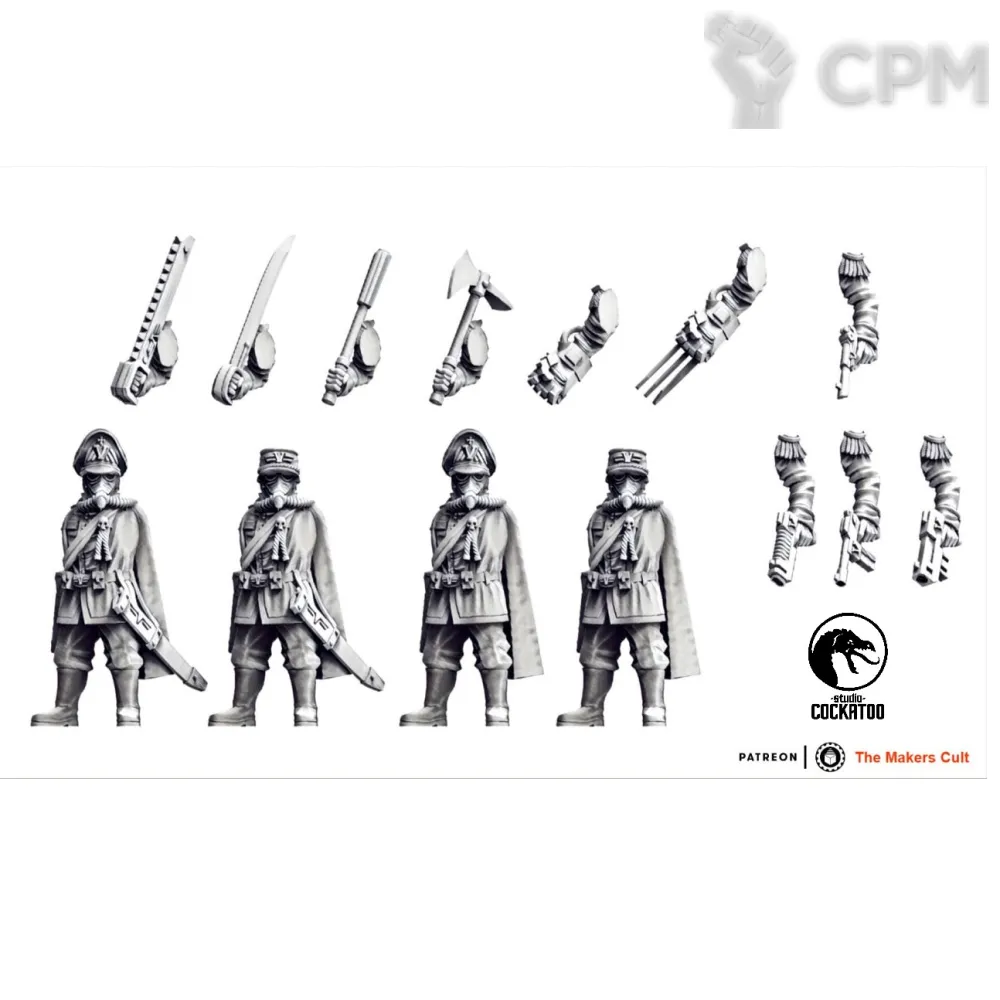 Очень долгий срок подготовки заказа, неторопливая отправка с присвоением трека за несколько недель до фактической отправки. Зачистка моделей и баз после печати проведена небрежно. Масштаб не соответствует масштабу GW для использования в качестве прокси моделей.