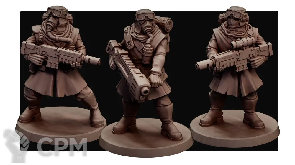 В набор входят пять бойцов, четверо с винтовками и специалист с плазмой. Можно дополнительно заказать доп бойцов для отряда - 150р. Можно комбинировать с руками от других наборов. Отлично подойдут как для гвардии, так и для киллтима.