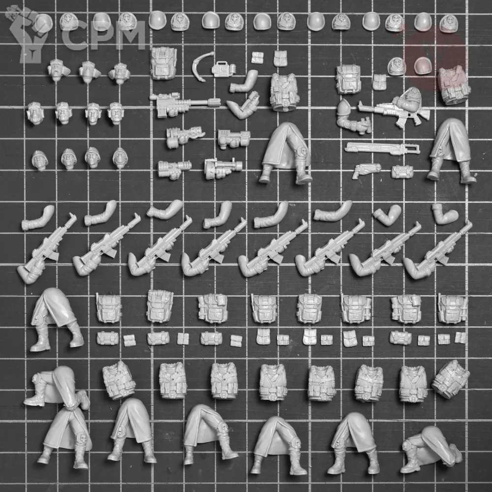 В комплект входят 108 детали; детали мультипарные и взаимозаменяемые; 5 вариантов оружия для специалиста, подставки 25 мм.