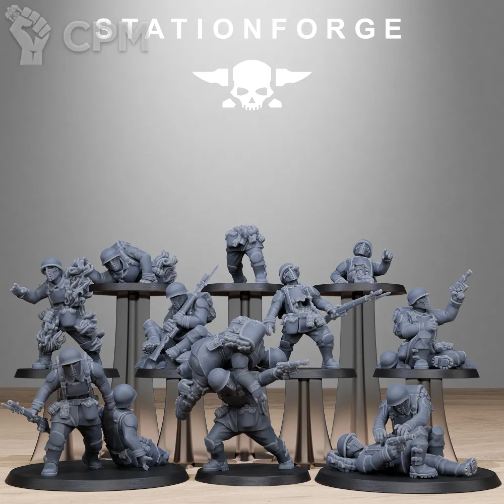 Выиграл на аукционе отряд касркин из 14 моделей. Качество печати отличное, со следами поддержек, как и было заявлено в описании аукциона. При отправлении упаковали как иглу Кощея: каждая модель в отдельном пакете, отдельный пакет в отдельной пупырке, отдельная пупырка в общей пупырке, общая пупырка в коробке (коробка в зайце, заяц в соколе и т.д.). Все пришло небитым, некрашеным. Будете покупать или выиграете на ауке, докупите сразу базы.