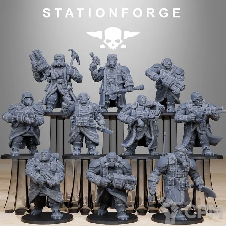 Выиграл на аукционе отряд касркин из 14 моделей. Качество печати отличное, со следами поддержек, как и было заявлено в описании аукциона. При отправлении упаковали как иглу Кощея: каждая модель в отдельном пакете, отдельный пакет в отдельной пупырке, отдельная пупырка в общей пупырке, общая пупырка в коробке (коробка в зайце, заяц в соколе и т.д.). Все пришло небитым, некрашеным. Будете покупать или выиграете на ауке, докупите сразу базы.