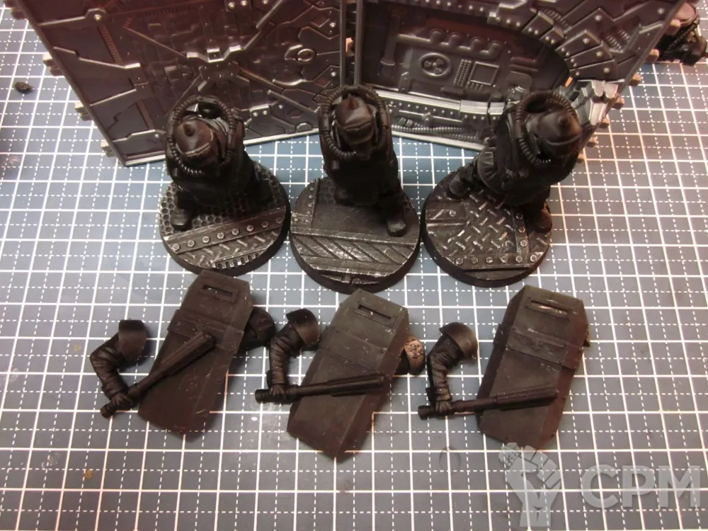 Штурвермины с щитами и алебардами - неправильный масштаб, но качественное всё остальное. Они мельче кланокрыс, исполненных цельным литьём, где-то на 10-15%, потому плохо смотрятся вместе.