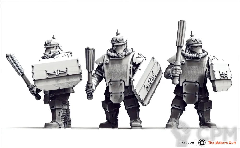 Хорошая печать, однако не идеальная. Из минусов: миниатюры чуть меньше современного стандарта gw. На столе заметить не просто, но при наглядном сравнении разница видна хорошо. Однако, для подвальных сходок настольщиков вполне качественно и приятно глазу. Из-за разницы в размере есть опасения, что наборы вооружения могут не совпасть с gw-шной основой, но за это ручаться не могу.