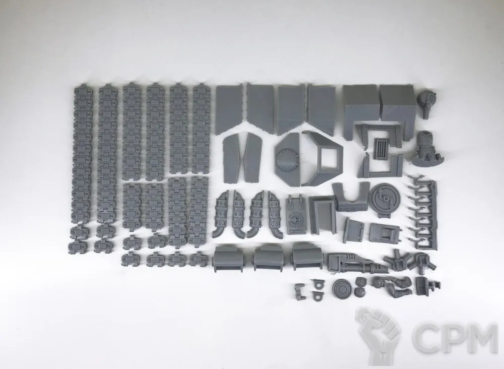 В целом качество приемлемое, есть небольшие косяки, примерно 5-8% от общего числа миниатюр, пузырьки, смещения, расслоения, но всё исправляемо, а в некоторых местах и не видно вовсе после сборки, базы на 1,5 мм выше оригинальных. Детали лучше бы оставили на литниках, не удобно искать нужное из россыпи деталей, сортировка заняла время.