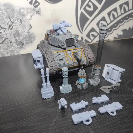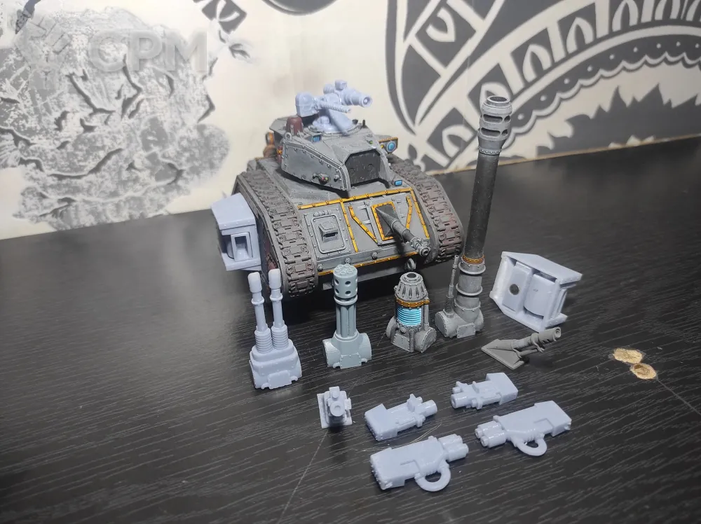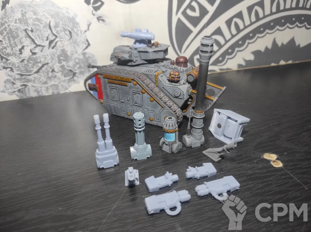 Leman Russ 1в1 копия ориги от форджи (модель solutionlesn), марс паттерн, замагничено вооружение. В один момент покрашен, но позднее добавлены/убраны битсы, так что покрас нарушен. В комплекте с танком разнообразное вооружение. В башню: Vanquisher Cannon, Punisher Gatling Cannon, Executioner Plasma Cannon, Annihilator Lascannon; на корпус: Autocannon, Lascannon, Heavy Bolter; для спонсонов: пара Heavy Bolters и пара Multi Melta. Единственная незамагниченная часть: Heavy Stubber и Hunter-Killer Missile на башне - они вклеены.