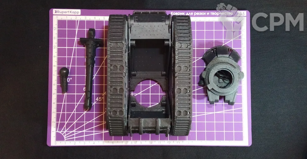 Модель состоит из двух частей корпуса (боевого и моторного отделения), гусениц, башни, башенного орудия, орудия для ВЛД. Модель снята с поддержек, промыта и засвечена ультрафиолетом. Могут наличествовать следы от поддержек - аккуратно удалите их модельным ножом, либо шкуркой.