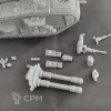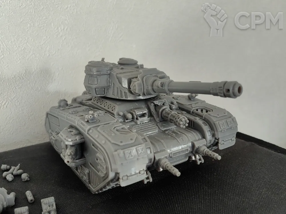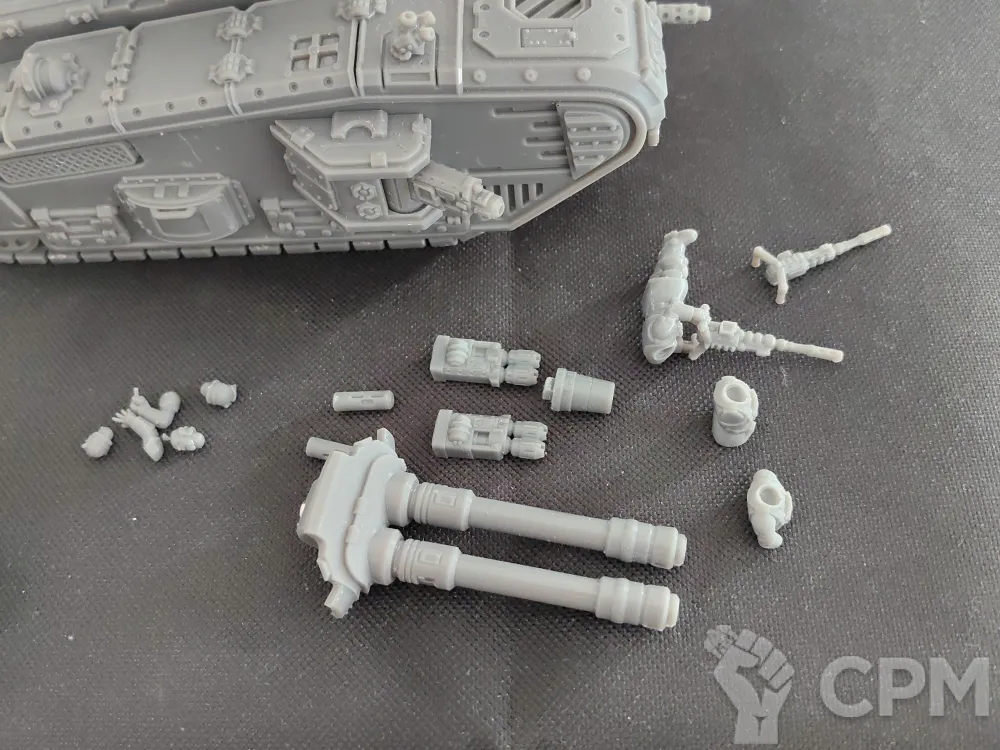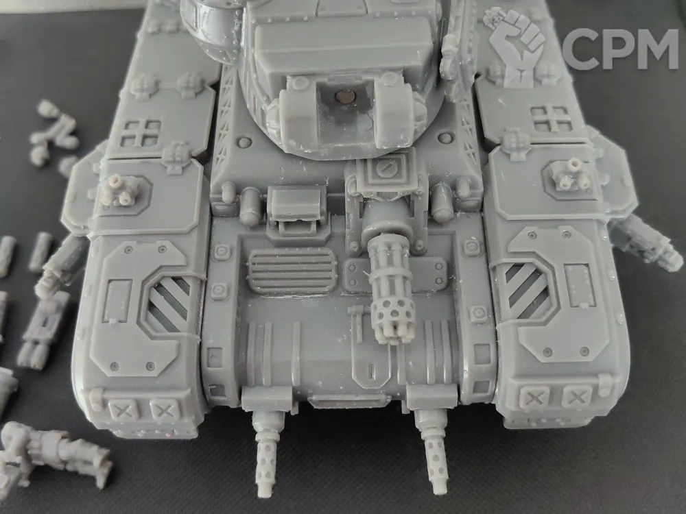 Полная комплектация, основное орудие на магнитах, спонсоны и остальные пушки - съемные. Экипаж не клеил.