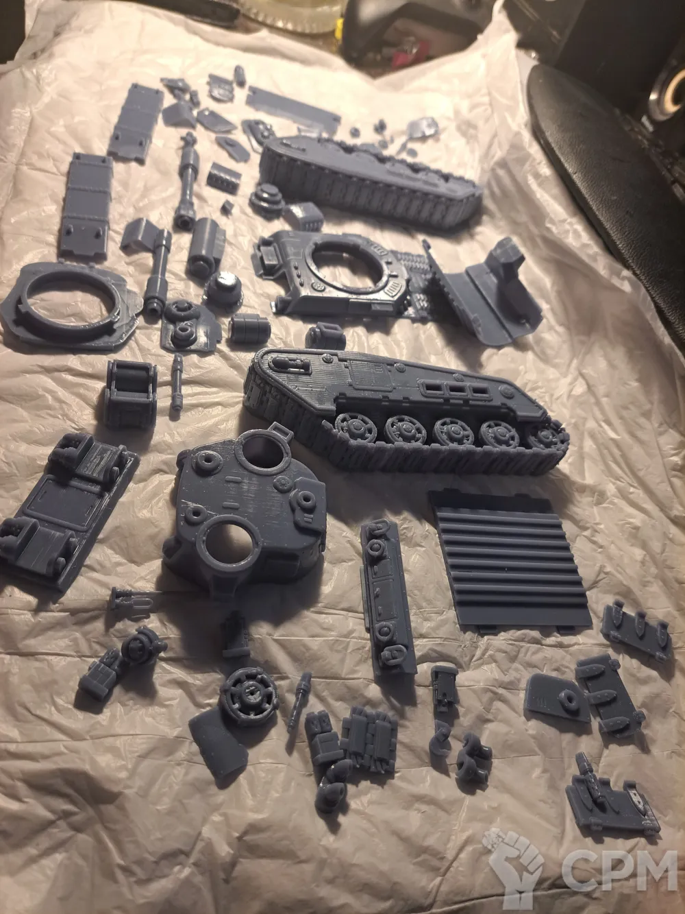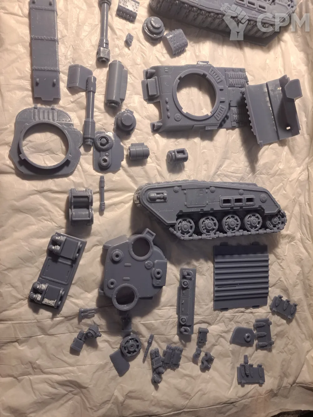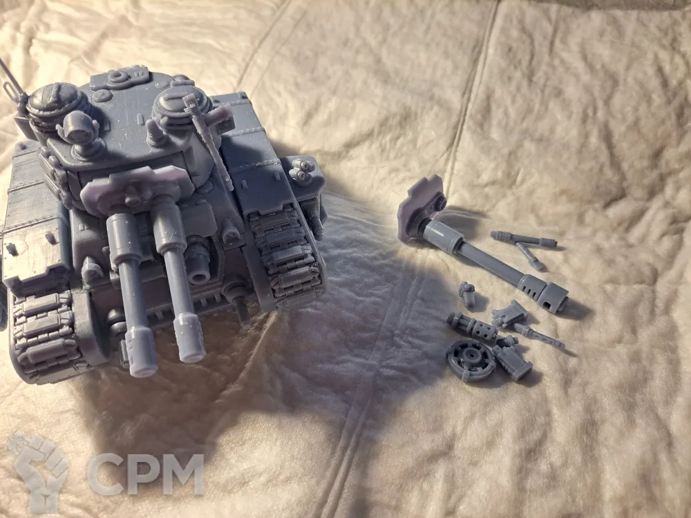 Качество печати на 3+. Есть мелкие наплывы по корпусу, кривое дуло заднего пулемета и сильно оплывшая задняя аппарель. Чтобы вставить боковые заглушки и люки их пришлось СИЛЬНО допиливать напильником (ибо часть "папа" сильно толще части "мама". Да и форма отверстий у последней скорее не круг, а треугольник). Но за свои деньги вполне норм.