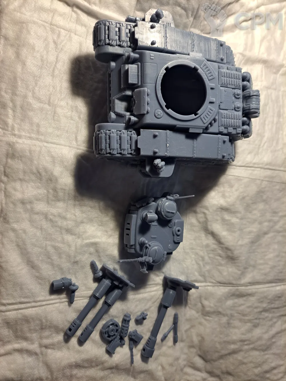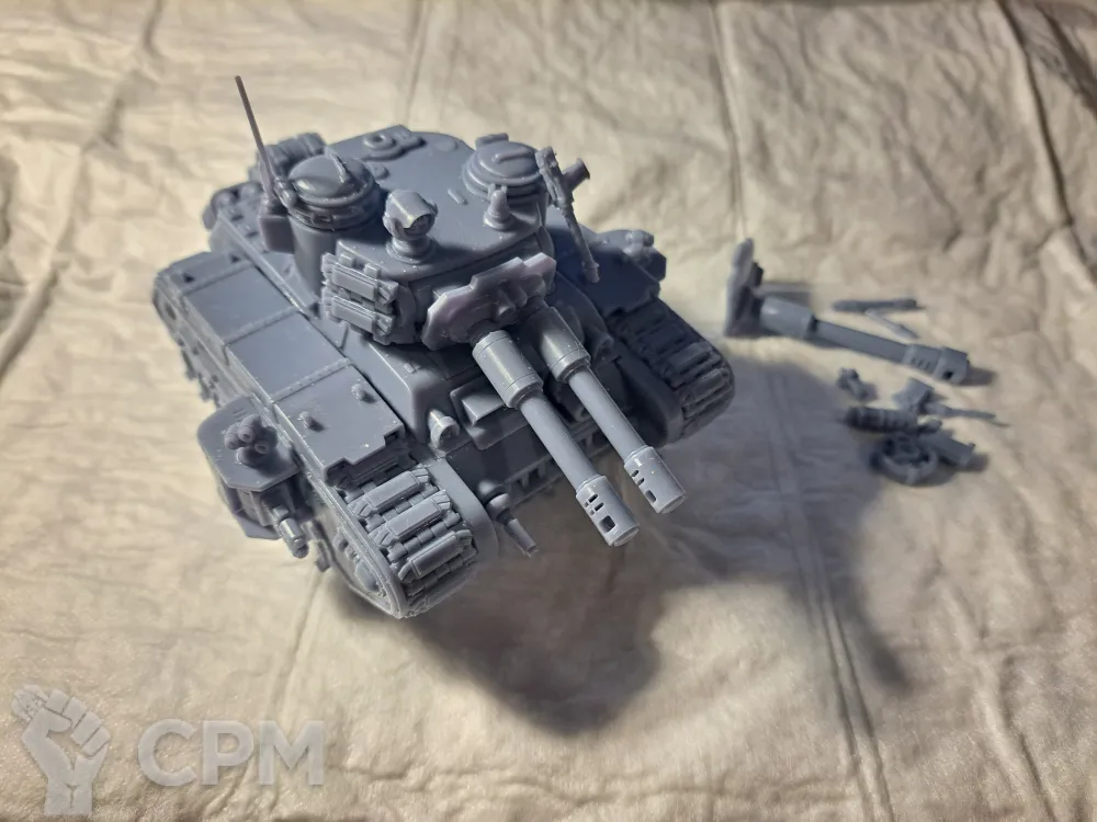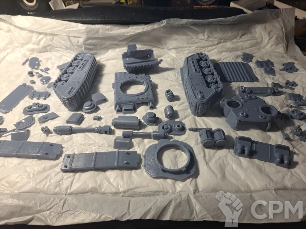 Качество печати на 3+. Есть мелкие наплывы по корпусу, кривое дуло заднего пулемета и сильно оплывшая задняя аппарель. Чтобы вставить боковые заглушки и люки их пришлось СИЛЬНО допиливать напильником (ибо часть "папа" сильно толще части "мама". Да и форма отверстий у последней скорее не круг, а треугольник). Но за свои деньги вполне норм.