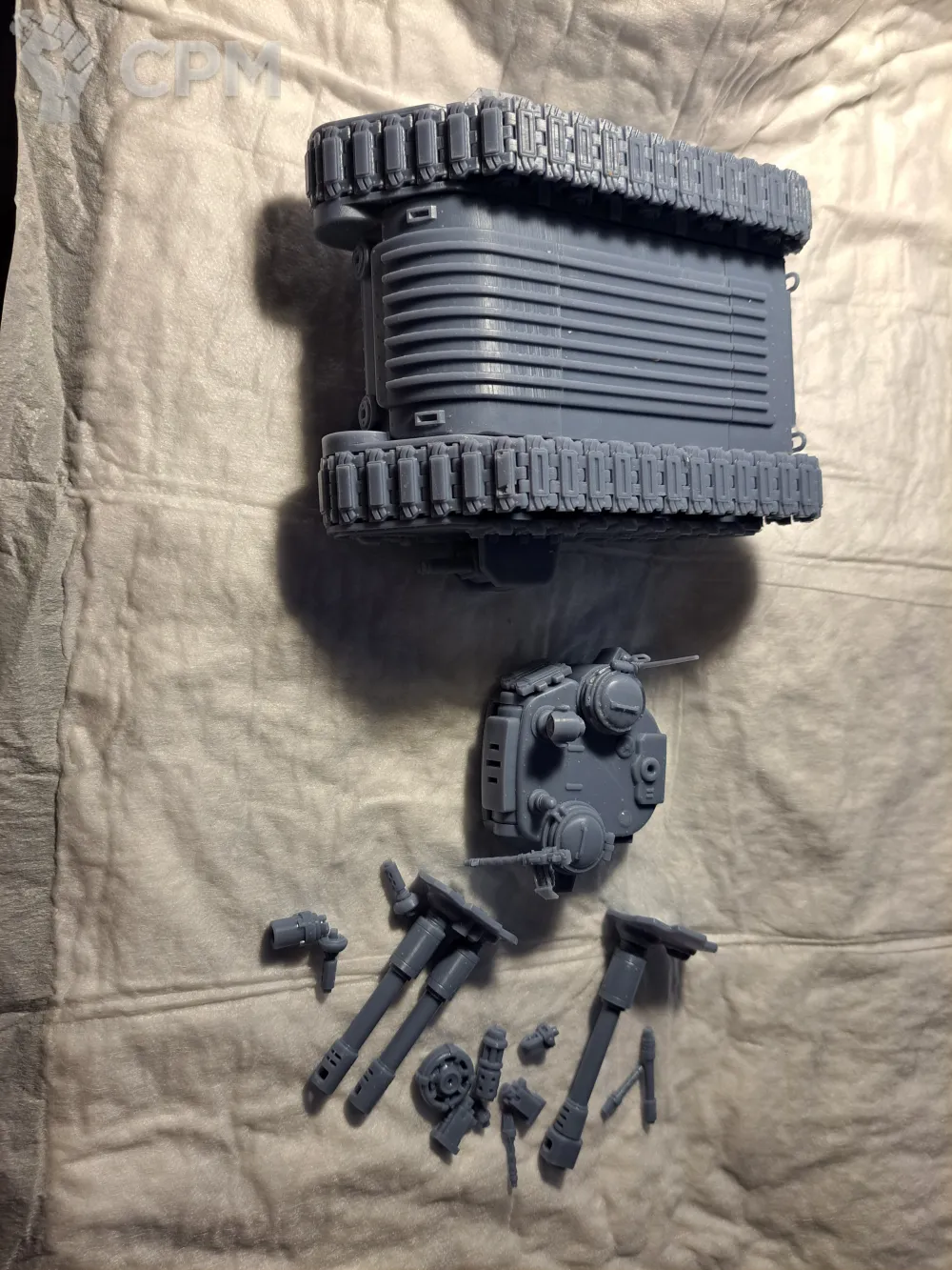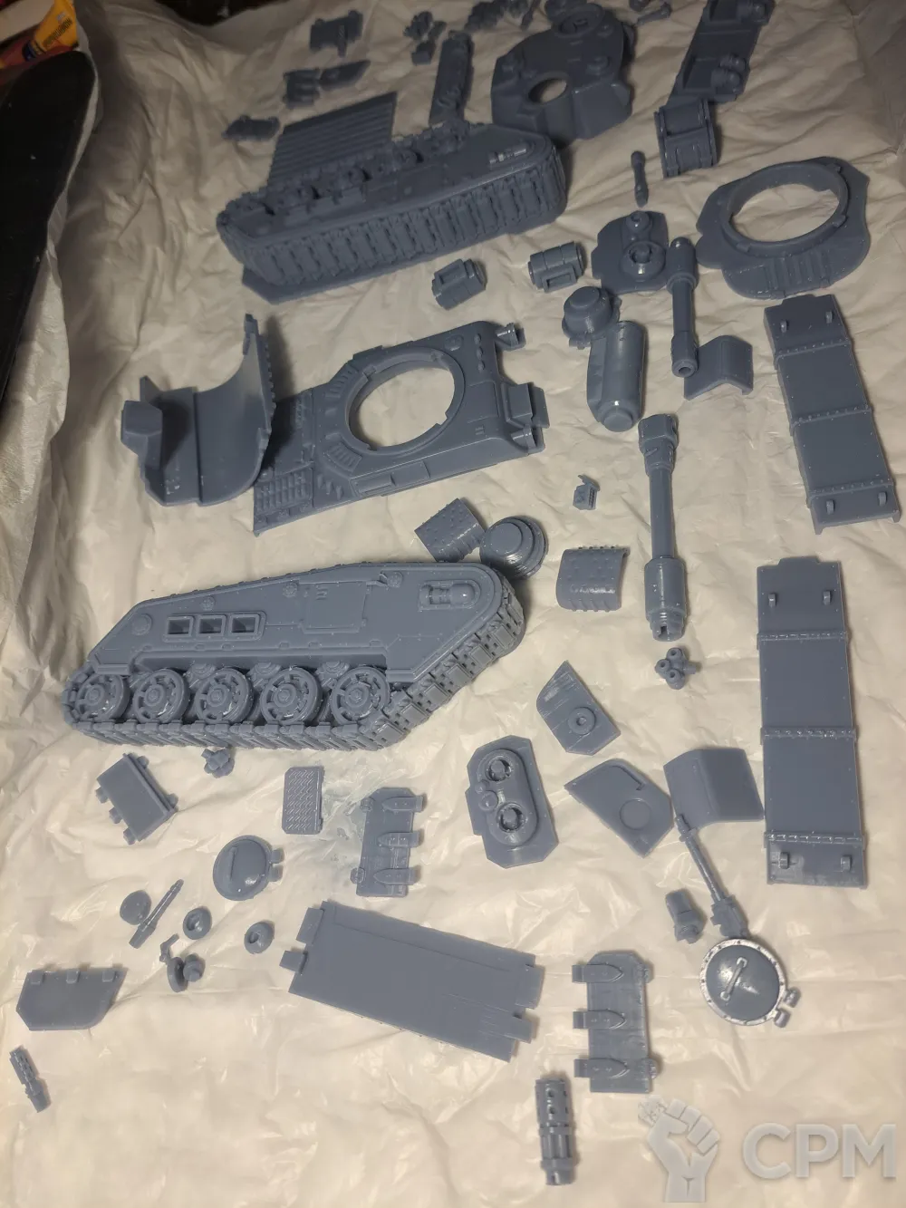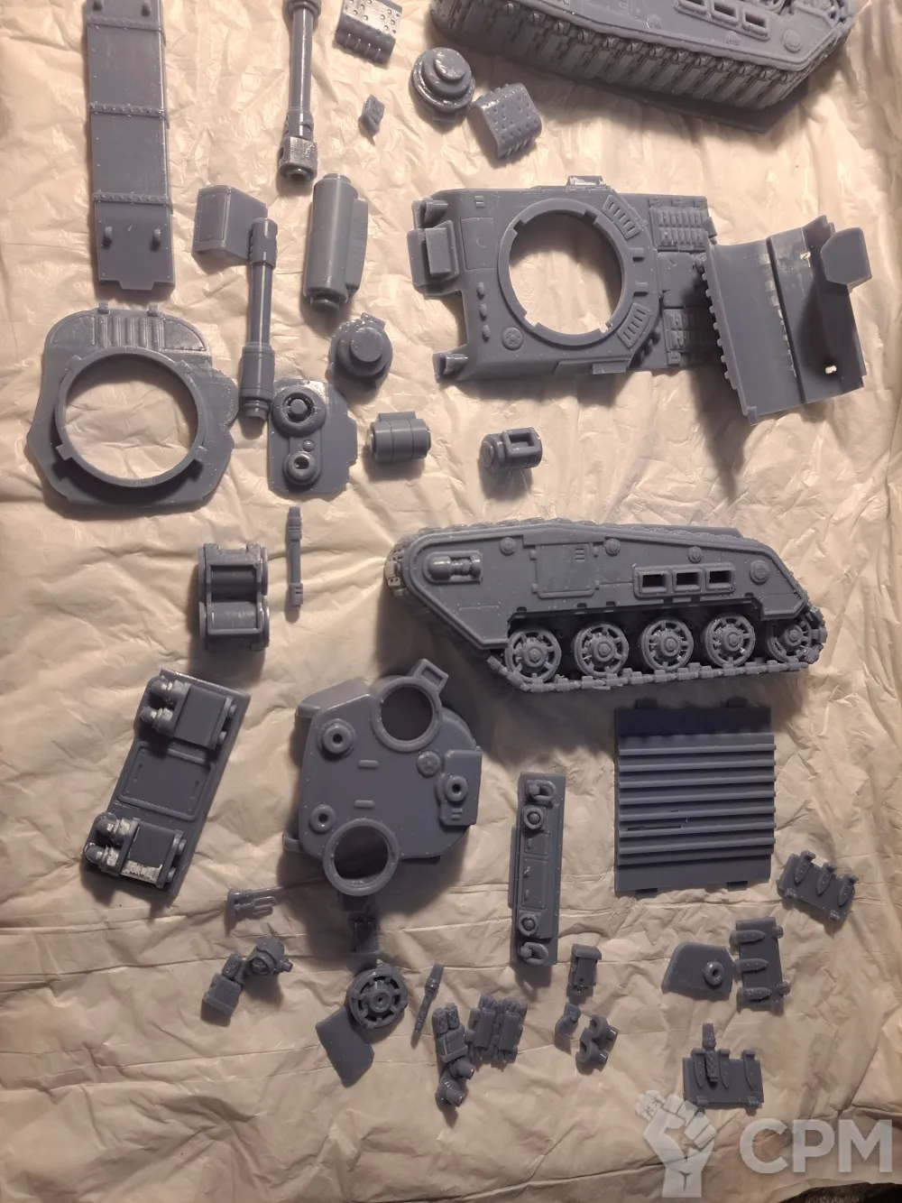 Качество печати на 3+. Есть мелкие наплывы по корпусу, кривое дуло заднего пулемета и сильно оплывшая задняя аппарель. Чтобы вставить боковые заглушки и люки их пришлось СИЛЬНО допиливать напильником (ибо часть "папа" сильно толще части "мама". Да и форма отверстий у последней скорее не круг, а треугольник). Но за свои деньги вполне норм.