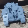 Корпус монолитный, прикрепляемые к нему гусеницы, двери, лючки и орудия (два курсовых болтера и, собственно, система залпового огня) сложены отдельно, причём установка заранее замагничена к держателю (за что отдельное огромное спасибо!).