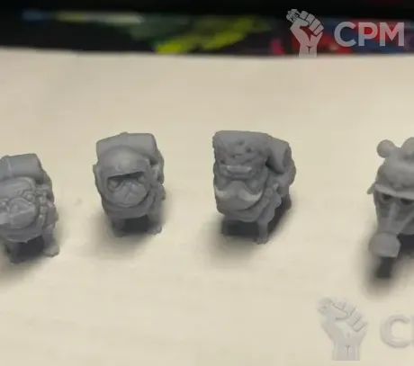 И так, спустя месяц ожидания они доехали, побитые, вонючие, просушены так, что часть смолы убирается пальцем, решил заказать тут, т.к. на пресловутом озоне ожидал конвейерную и бездушную печать, но пока ждал - заказал "Потренироваться" - результат конечно небо и земля в пользу масс маркета. Пойдут на запчасти для оформления баз, что-то мб еще получится спасти.