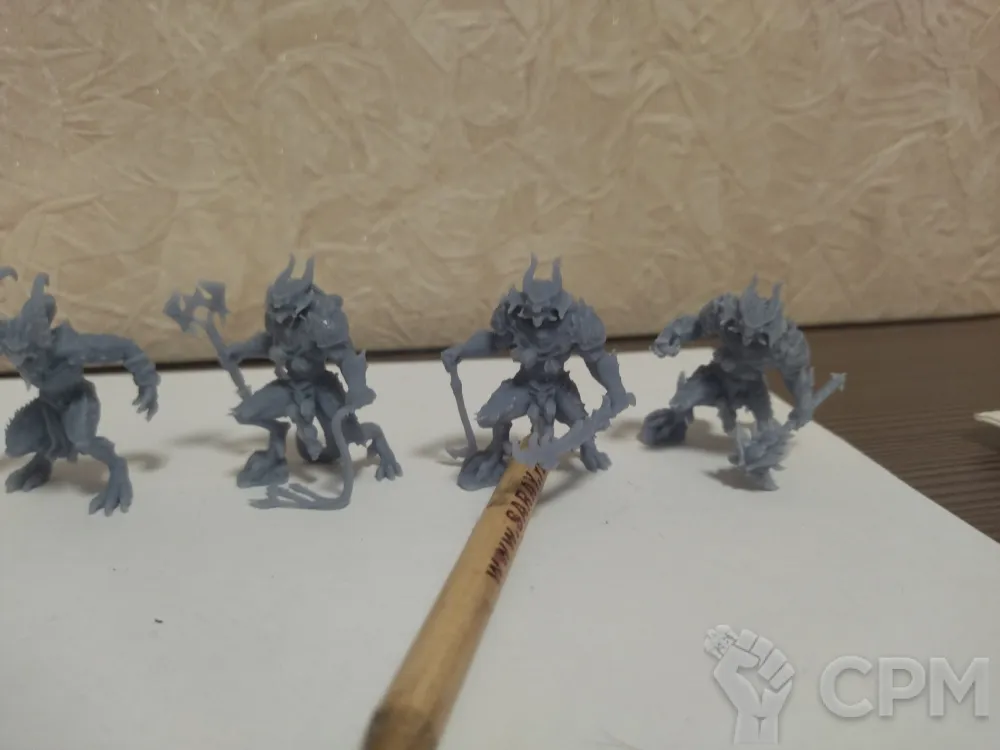 Заказывал скавенов, качество печати отличное, почти все поддержки были сняты. Единственное, что не понравилось - это упаковка кучи моделей с мелкими деталями в один зип пакет, при доставке часть хвостов и мечей сломались, и пришлось повозиться, чтоб приклеить все это обратно. Не смотря на это заказом доволен, по соотношению цена/качество одна из лучших студий, так что рекомендую продавца