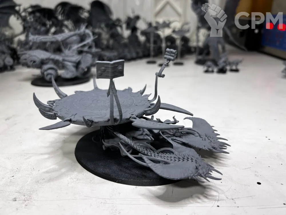 В комплекте колесница, один из демонов на выбор, подставка для моделей и черепки для украшения баз!