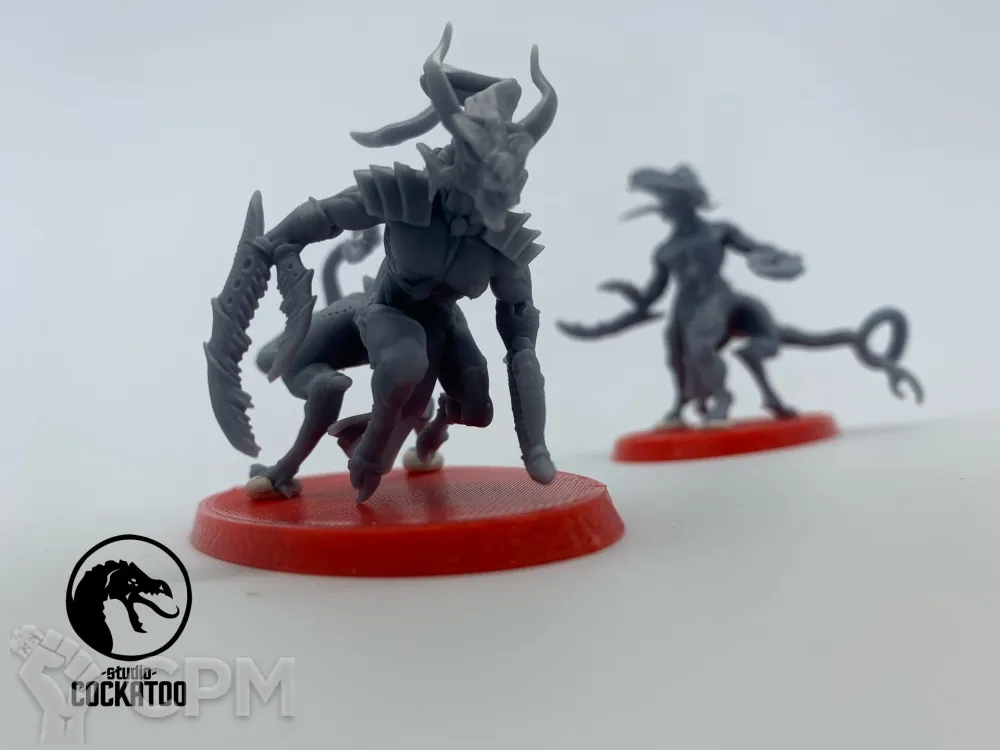 Очень долгий срок подготовки заказа, неторопливая отправка с присвоением трека за несколько недель до фактической отправки. Зачистка моделей и баз после печати проведена небрежно. Масштаб не соответствует масштабу GW для использования в качестве прокси моделей.