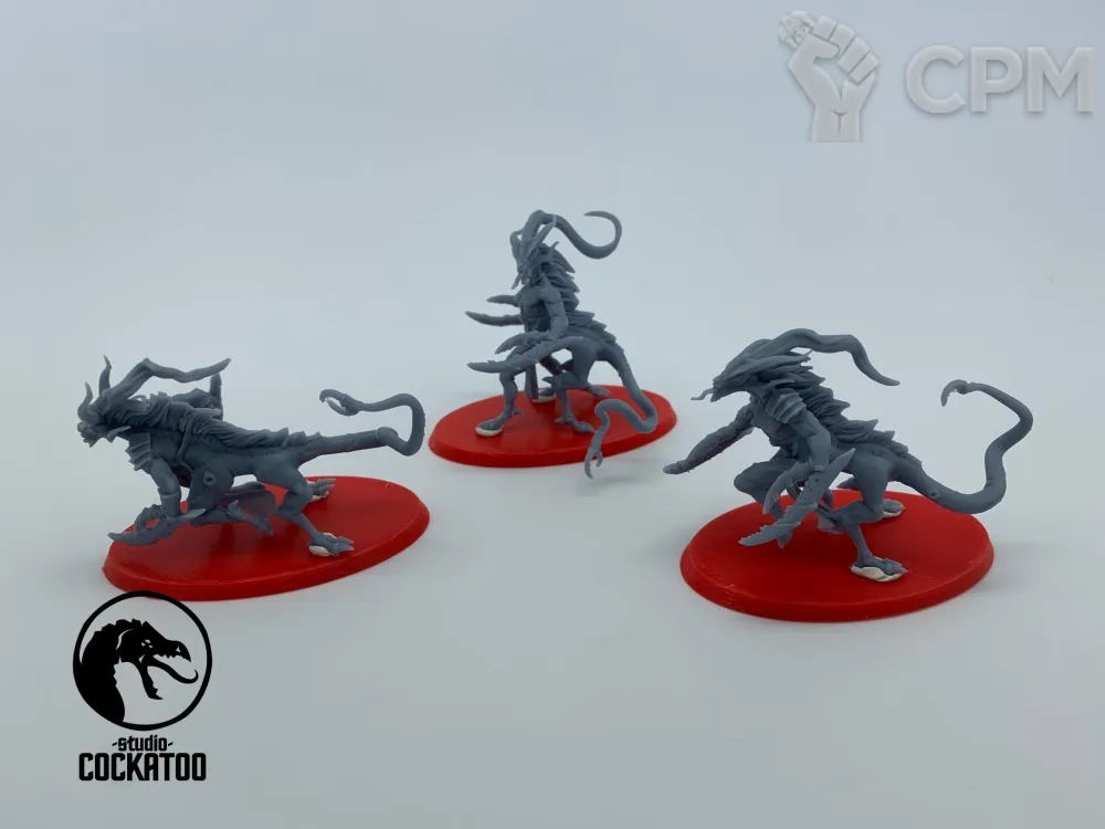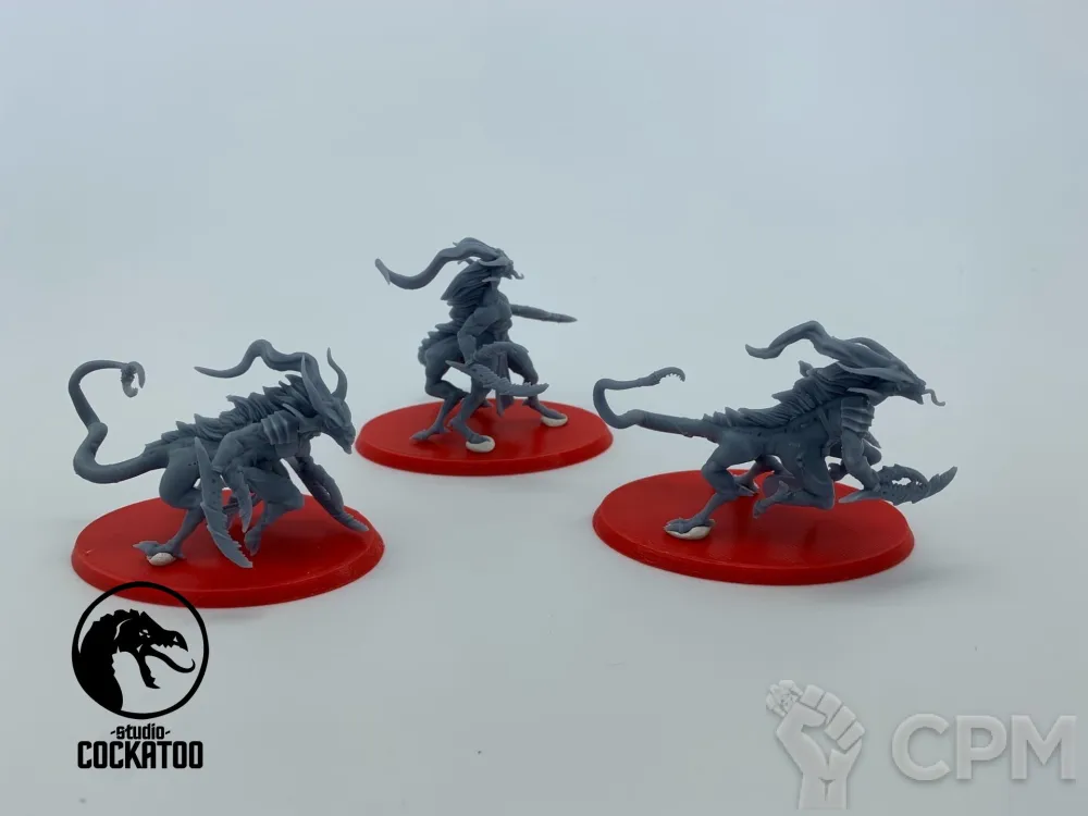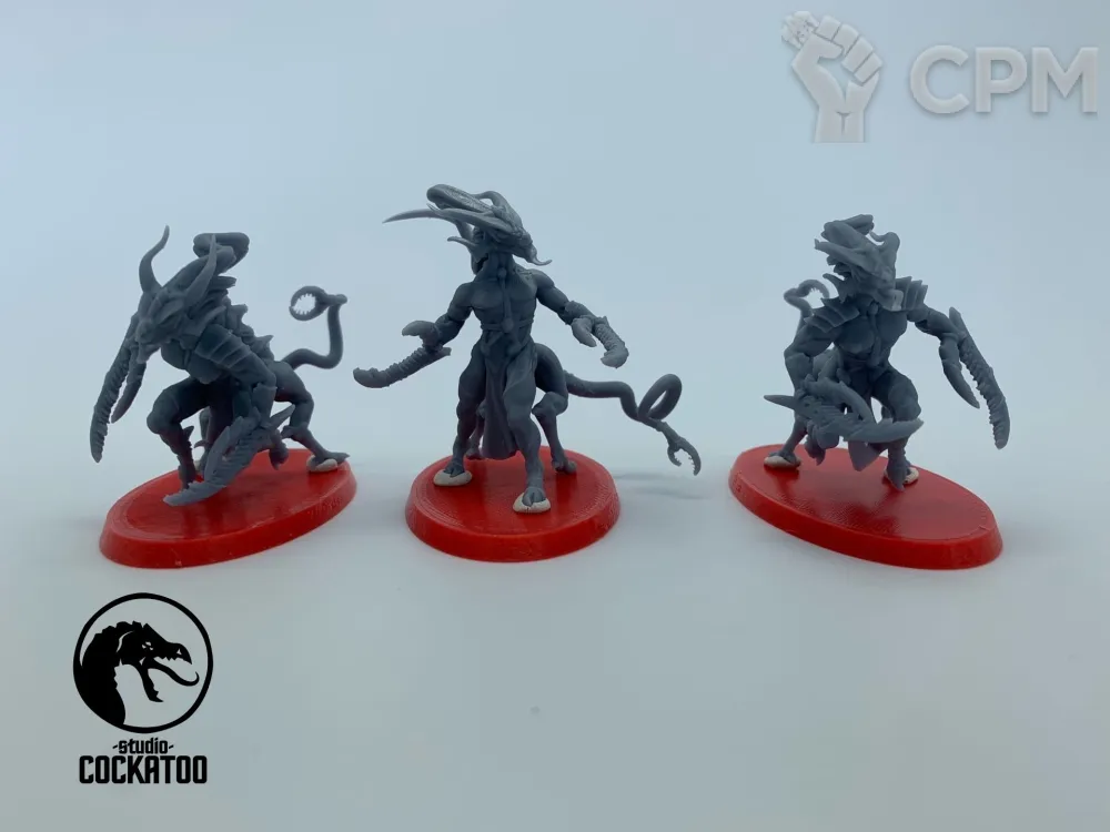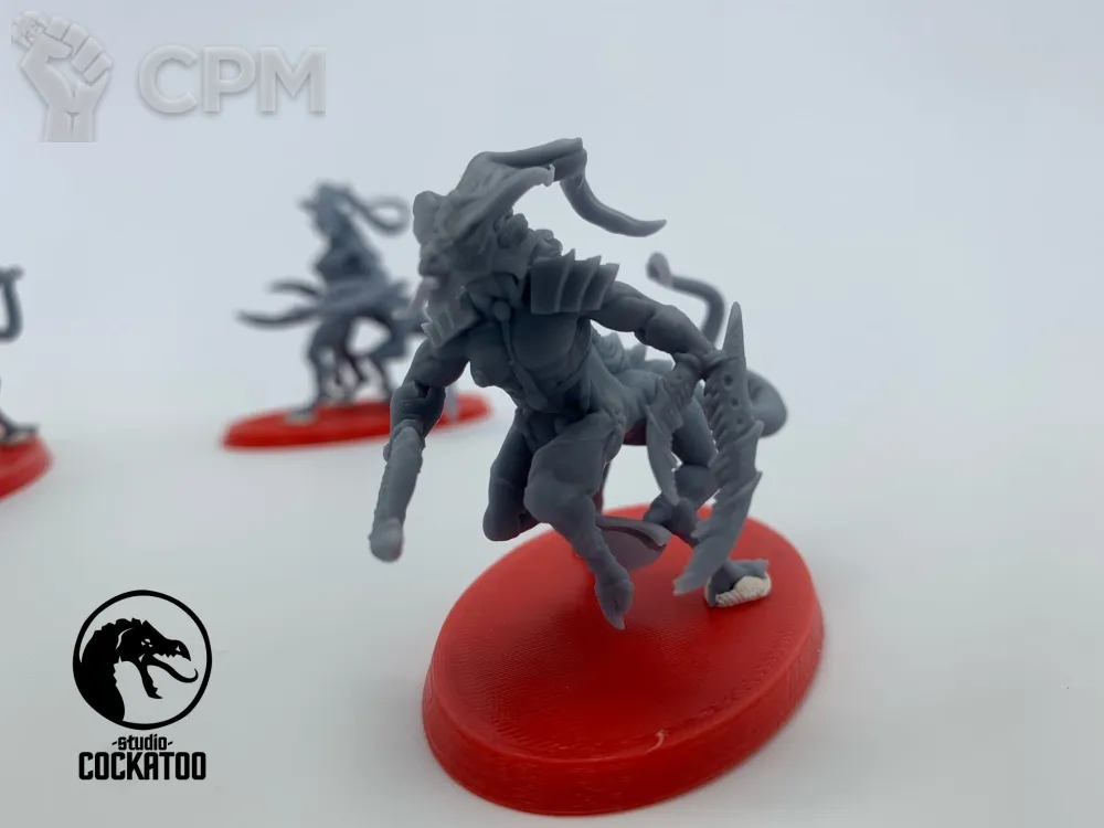 Это ОГОНЬ!!! Печать полупрозрачной смолой, недочетов печати нет. 99.9% поддержек снято. Стыкуется все прекрасно. Все, что сделал: промыл в моющем средстве и "на всякий" дозасветил в УФ (это опционально). Модели уже собраны и загрунтованы. Теперь по моделям: альтернативный мавлок/тригон просто огнище! Гораздо массивнее и больше оригинала. Выглядит как реальный тиранид из книжек - ссука опасный и колючий!!! Повторюсь: он лучше, больше и злее оригинала от ГВ (правда пасть оригинального мавлока шире=) ). Барбер Херодуля - огромный, массивный и, ссука, тоже опасный (все как по лору). Обе модели детализированы по самое набалуйся. Крайне рекомендую к покупке любителям необычных минек на полке/столе. Украшение коллекции.