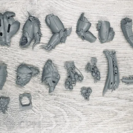 хорошее литье с отличной детализацией. без пузырей. некоторые элементы, такие как цепные мечи с одной стороны с облоем, но все легко обрабатывается модельным ножом.