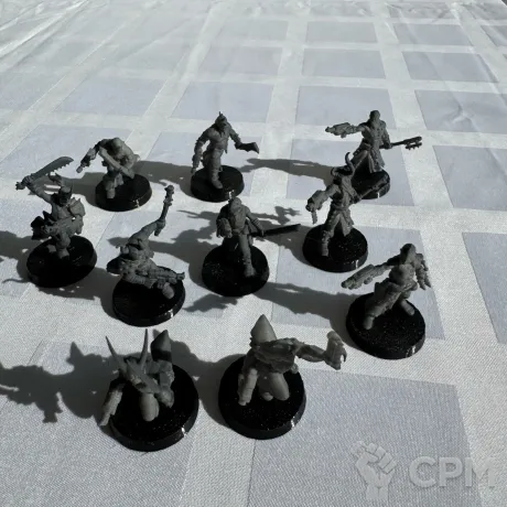 3D печать. Качество - 12К . Напечатаны из хорошей смолы. После печати хорошо обработаны спиртом и засвечены в УФ-камере. Прочные, но при этом пластичные. Немного загрунтованы. Можно заказать с грунтом или без. Подставки в комплекте. Цена за 10 моделей.