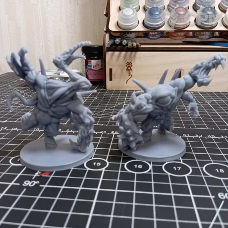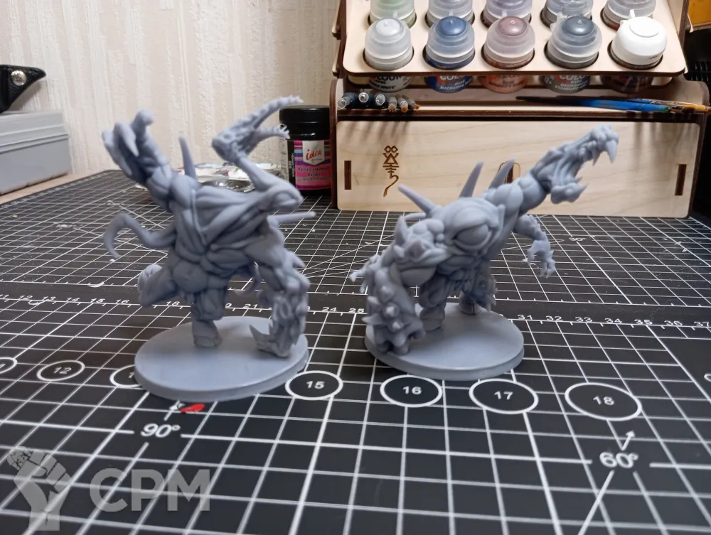 Печатные спавны из ABS-like смолы, по размеру чуть больше оригинала, но на поставках умещаются нормально