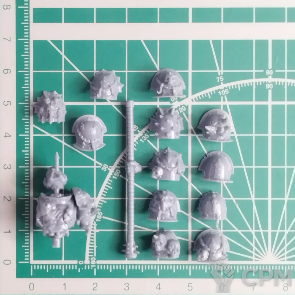Печать выполнена на 3D-принтере с разрешением в 14k, наплечники промыты и засвечены.