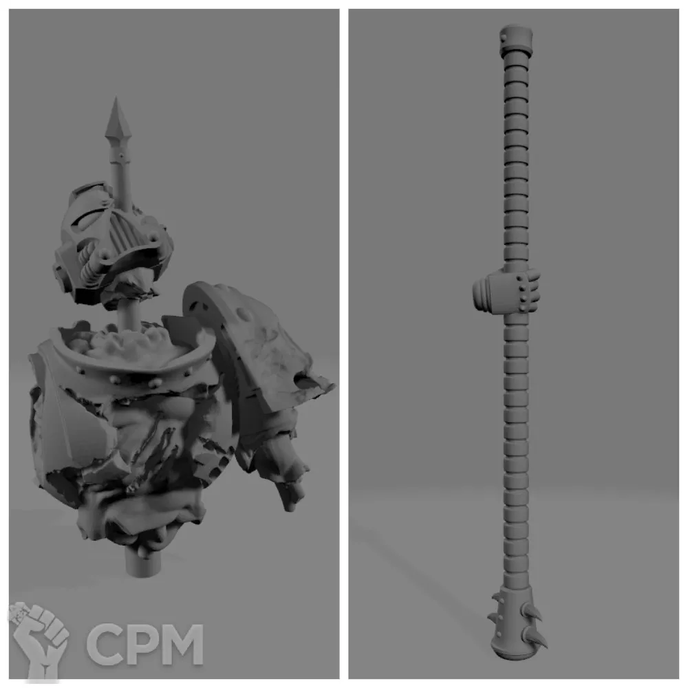 Послесловие после печати: на данный момент штырь, пронизывающий тушку лоялиста, для крепления к древку придётся срезать, делать углубление и только после этого крепить. Как будет свободное время, этот недочёт в чертеже модели будет устранен и данное послесловие удалено.