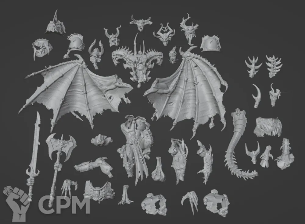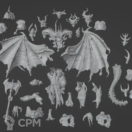 Daemon Prince with wings. Wh40k/AoS. Демон-принц с крыльями. 3д печать. В комплект входят 5 видов голов, 5 видов хвостов. Возможность собрать для 40к и АоСа.