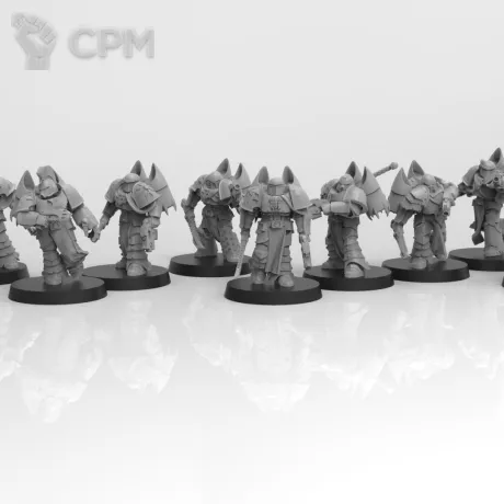 Хорошая печать, однако не идеальная. Из минусов: миниатюры чуть меньше современного стандарта gw. На столе заметить не просто, но при наглядном сравнении разница видна хорошо. Однако, для подвальных сходок настольщиков вполне качественно и приятно глазу. Из-за разницы в размере есть опасения, что наборы вооружения могут не совпасть с gw-шной основой, но за это ручаться не могу.