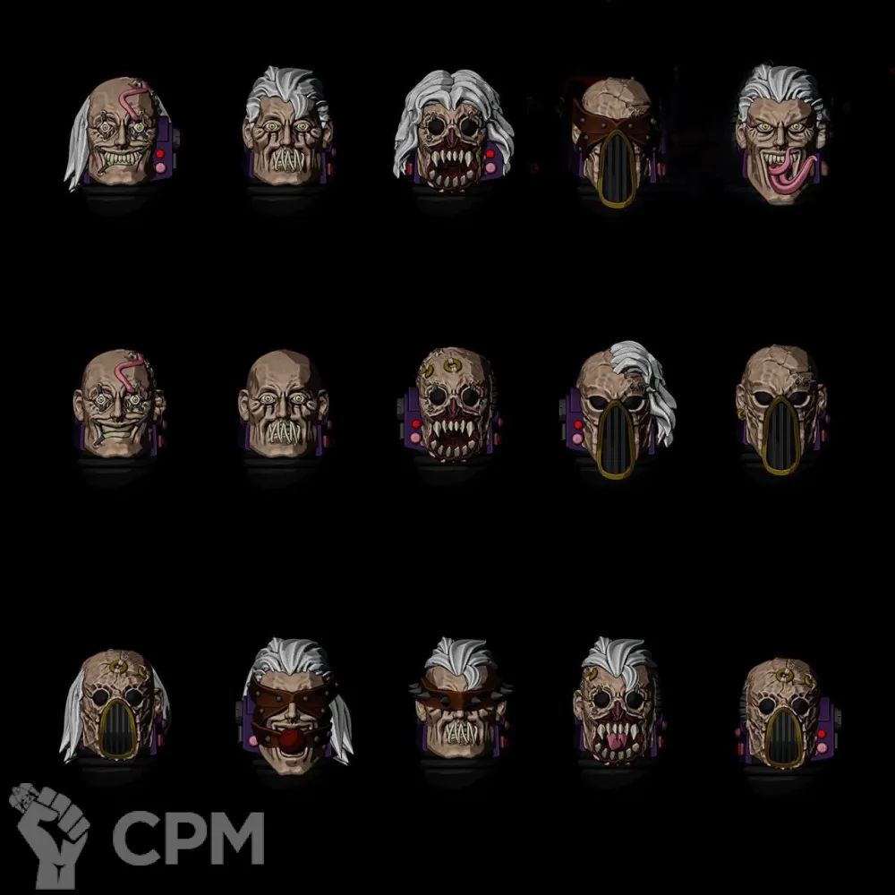 15 голов Детей Императора. Модели изготовлены при помощи фотополимерного 3д принтера elegoo saturn 4 ultra (качество печати - 12k) Состояние модели: новое. Модели отчищены от поддержек, промыты и засвечены. Печать проводится фотополимерной смолой Conjure Standard!