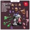 В комплект входят 35 деталей, в том числе - 2 варианта головы - 2 варианта правой руки - 4 варианта правой кисти - 4 варианта левой кисти - 2 элемента для спины - 2 элемента на поясе - 3 ствола на пушке - 2 вида турбин - 40mm подставка