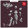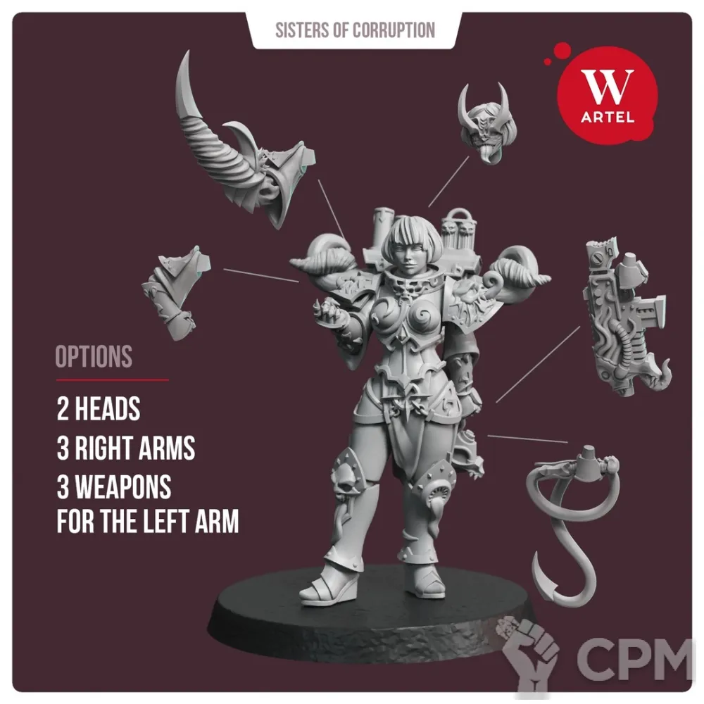 В комплект входят 15 деталей, в том числе: - 2 варианта головы - 3 варианта правой руки (с "манящим жестом", уперев кулак в бок, с тентаклей) - 3 варианта левой кисти (с кнутом, с пистолетом, с винтовкой) - возможна сборка без табарда на ягодицах - так же возможна сборка без ранца - подставка 32 мм.