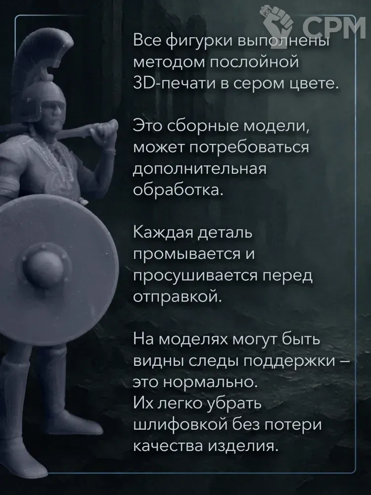 ✔Все модели напечатаны на 3D принтере из фотополимерной смолы и имеют серый цвет.