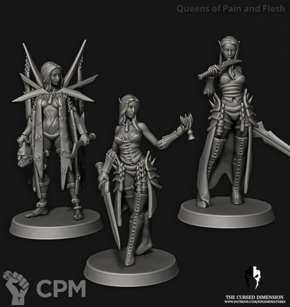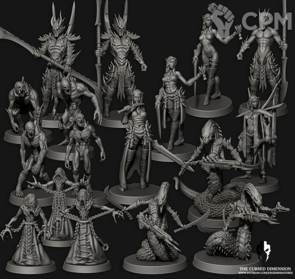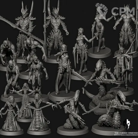 Элита Друкхари. 3д печать. в набор входят 17 моделей, 14 25-мм подставок и 3 40-мм подставки.