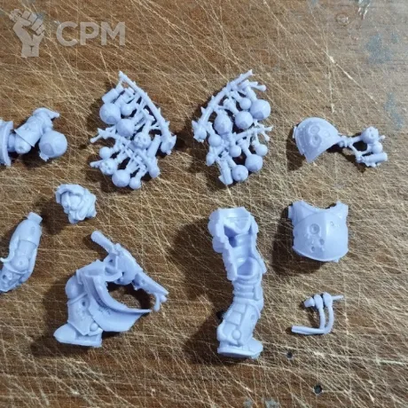 Очень прочный материал с высокой детализацией миниатюр. Единственный недостаток - тяжело не повредив отсоединять от литникасиловой ранец.