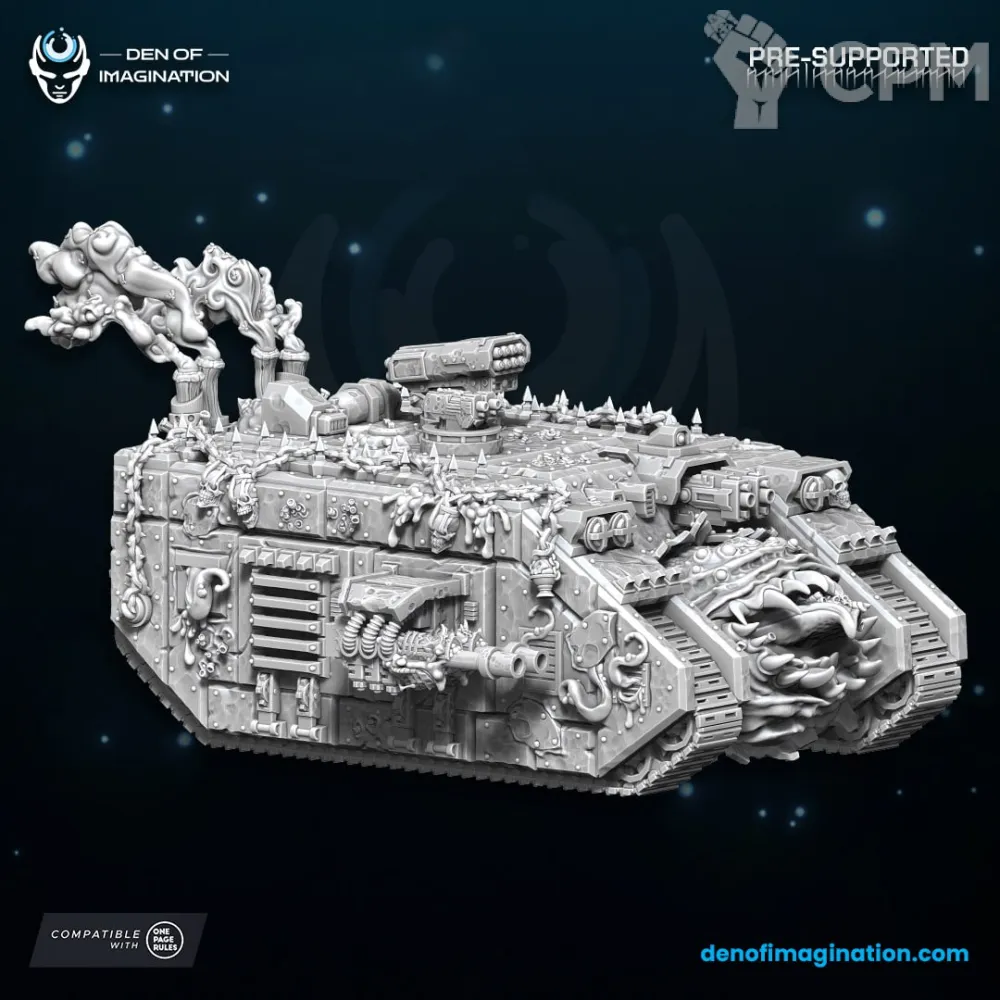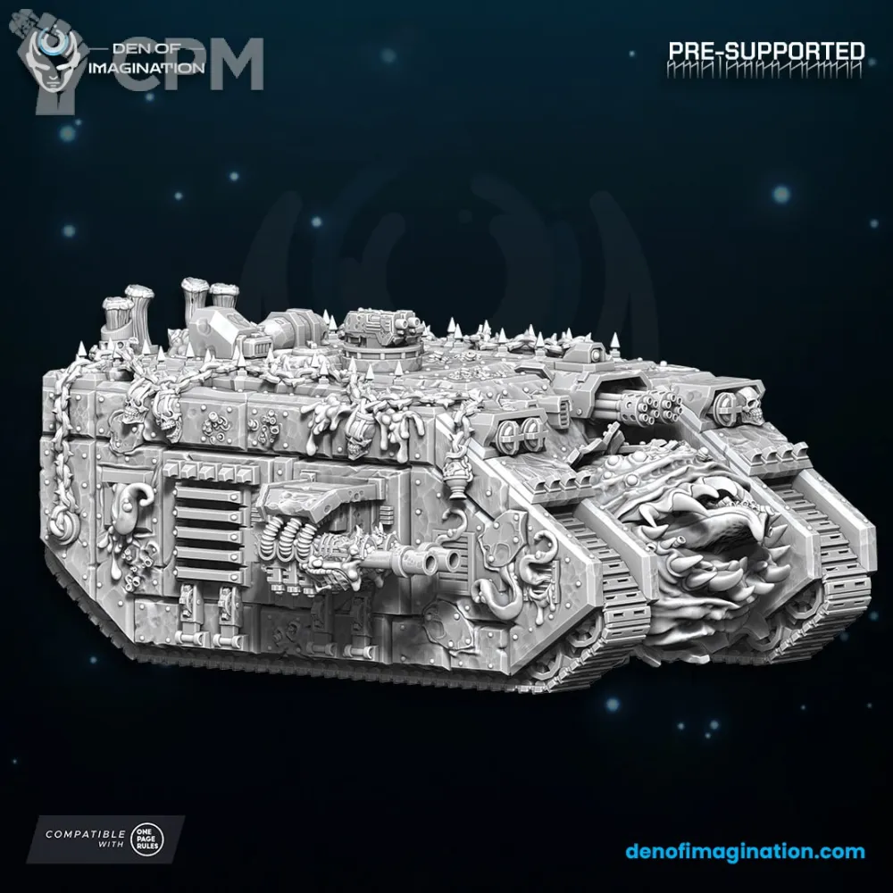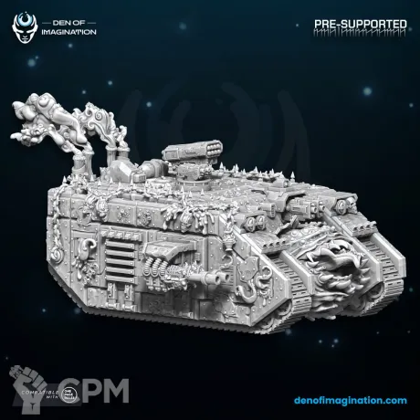 Миниатюра приехала в коробке, хорошо упакована. Пластик и качество печати хорошее. Брак печати отсутствует. Ленд Рейдер напечатан хорошо, собирается легко. Помимо основного вооружения присутствует дополнительное. Кроме того в подарок к основной модели прибыл Тифус с подставкой.