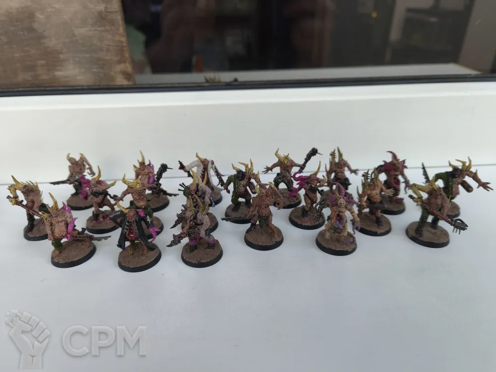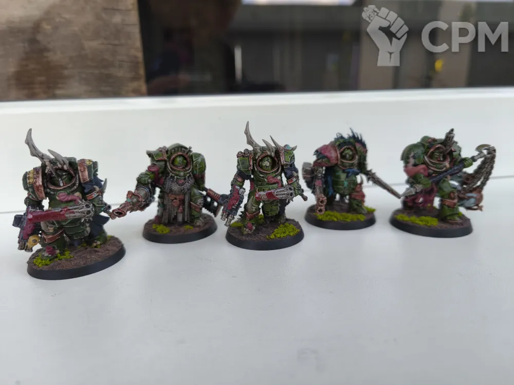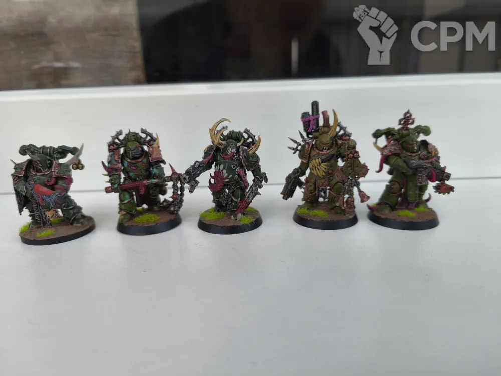 Продаю армию death guard в хорошем игровом покраске, на некоторых плагмаринах присутствуют варианты закачек (руки на магнитах). Продаю всё вместе. Все модели оригинальный пластик Games Workshop, кроме одного терминатора, он напечатан на 3д принтере, так же не все базы оригинальные, некоторые из дерева.