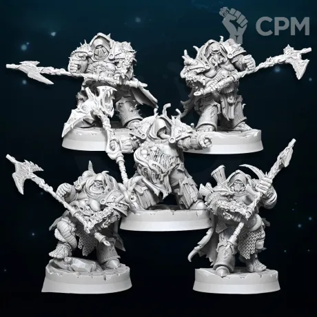 Пятёрка терминаторов Савана Смерти . Пять тушек с косами косами . Базы в комплект не входят! Модели изготовлены при помощи фотополимерного 3д принтера elegoo saturn 4 ultra (качество печати - 12k)