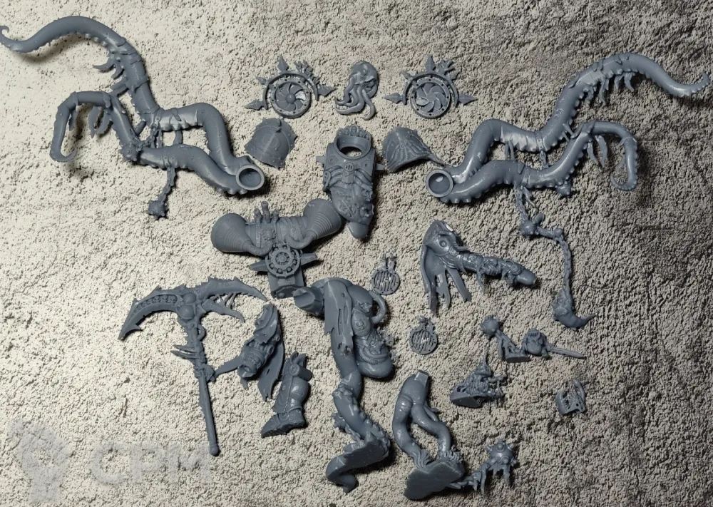 Продавец на мой взгляд лучший печатник на срм. Скорость между заказом и отправкой - пара дней. Качество упаковки 10/10, каждый элемент в отдельной пупырке и мешочке, из огромной модели ангрона и немаленького инвокатуса отвалился только микрочерепок с крыла, остальное идеально целое. Думаю еще немалая заслуга качественной чуть упругой смолы. Качество печати очень четкое, еще и зачищено от поддержек. Коммуникация 11/10, прислал две подарочных модели и красивую печатную подставку! А я просто выиграл два очень бюджетных аукциона. Буду заказывать еще, не знаю только когда это все собирать красить.