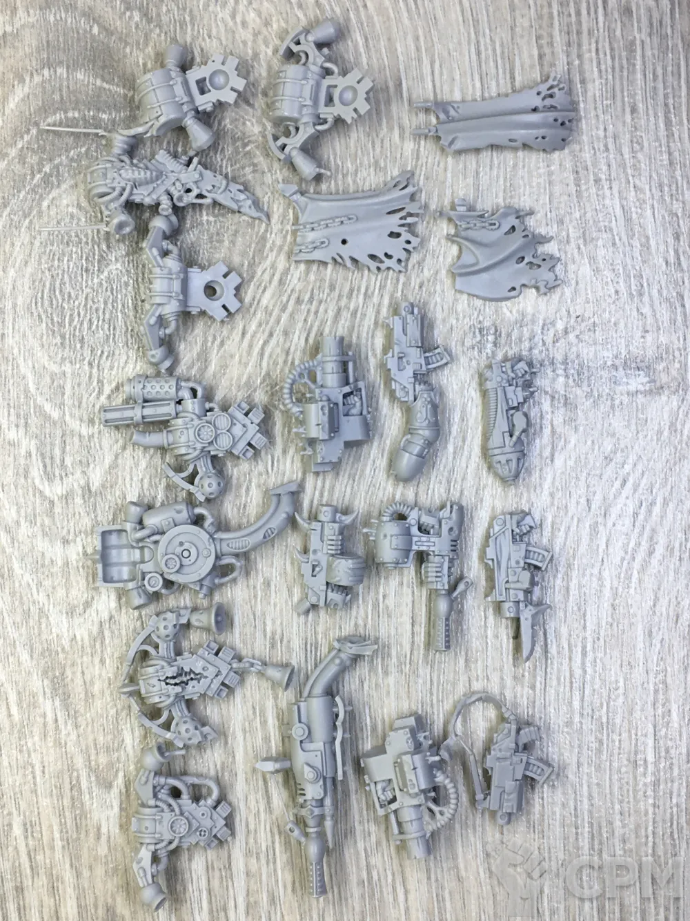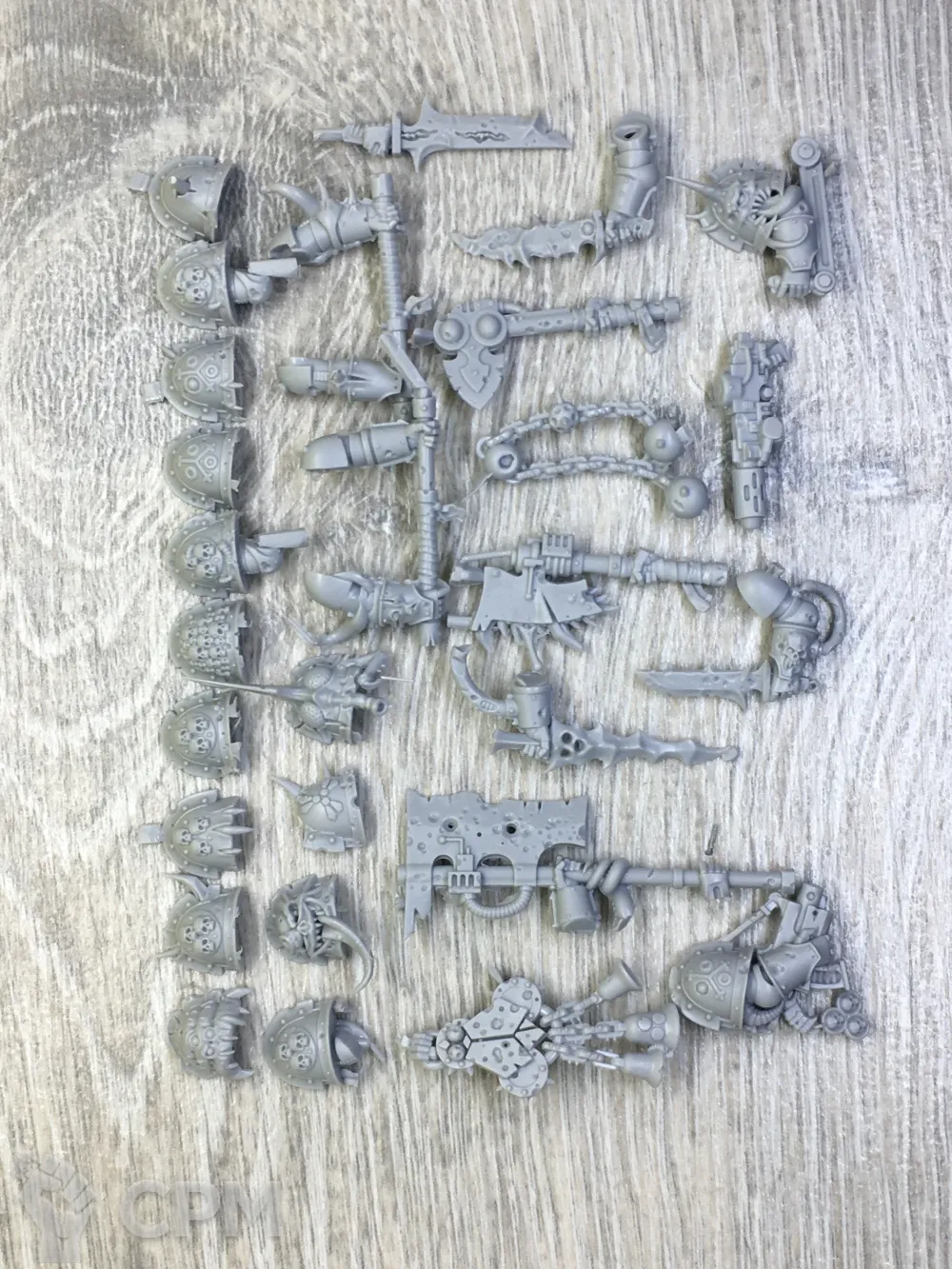 хорошее литье с отличной детализацией. без пузырей. некоторые элементы, такие как цепные мечи с одной стороны с облоем, но все легко обрабатывается модельным ножом.