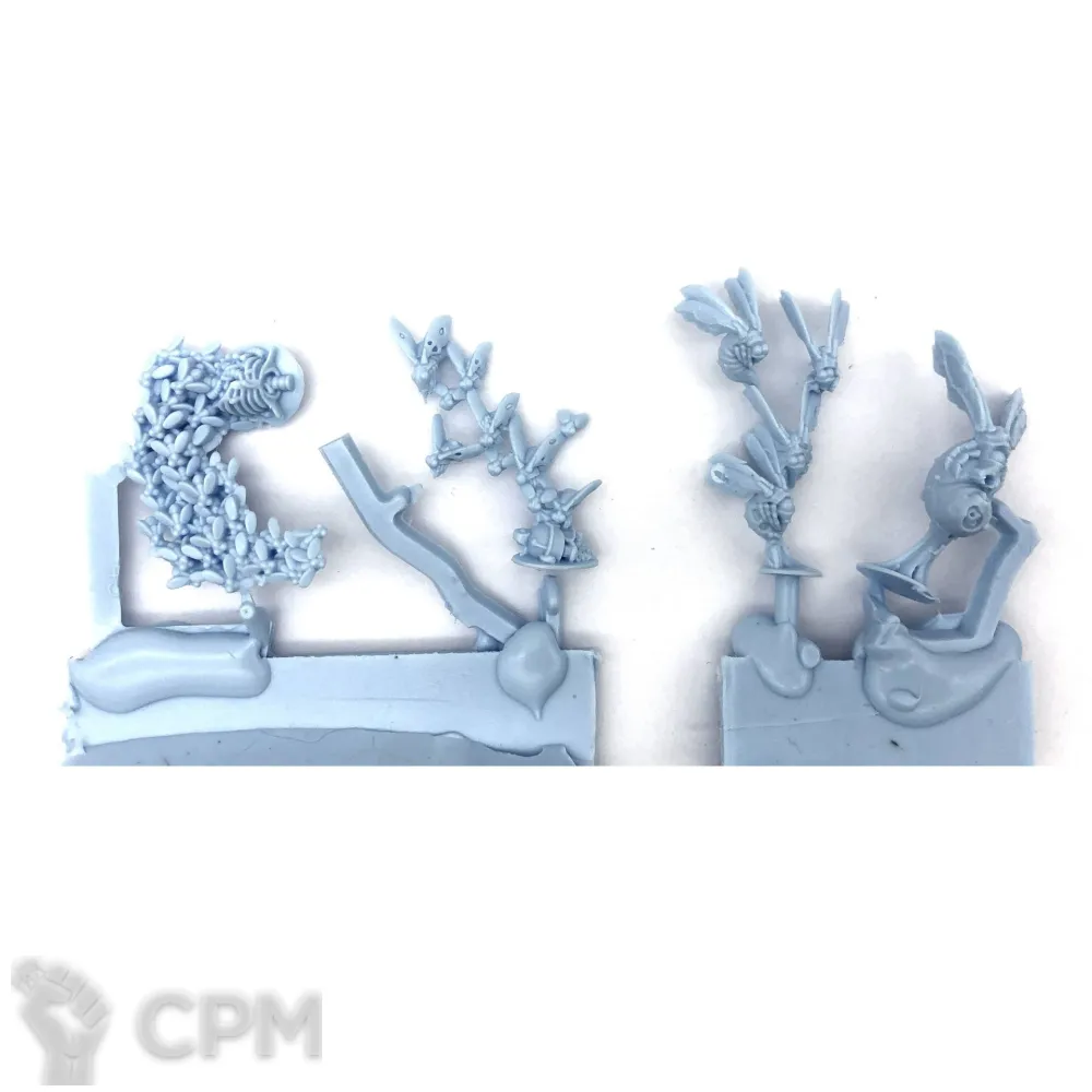 Но зачем-то потом какому-то неумехе поручили обработать швы. И это кошмар. Швы зачищены лишь частично, что лишь усложняет обработку миниатюр. Вдобавок человек совершенно не представляет что и зачем делает. Очень много срезано лишнего, кое-где запорота детализация, придётся много работать с зелёнкой.
