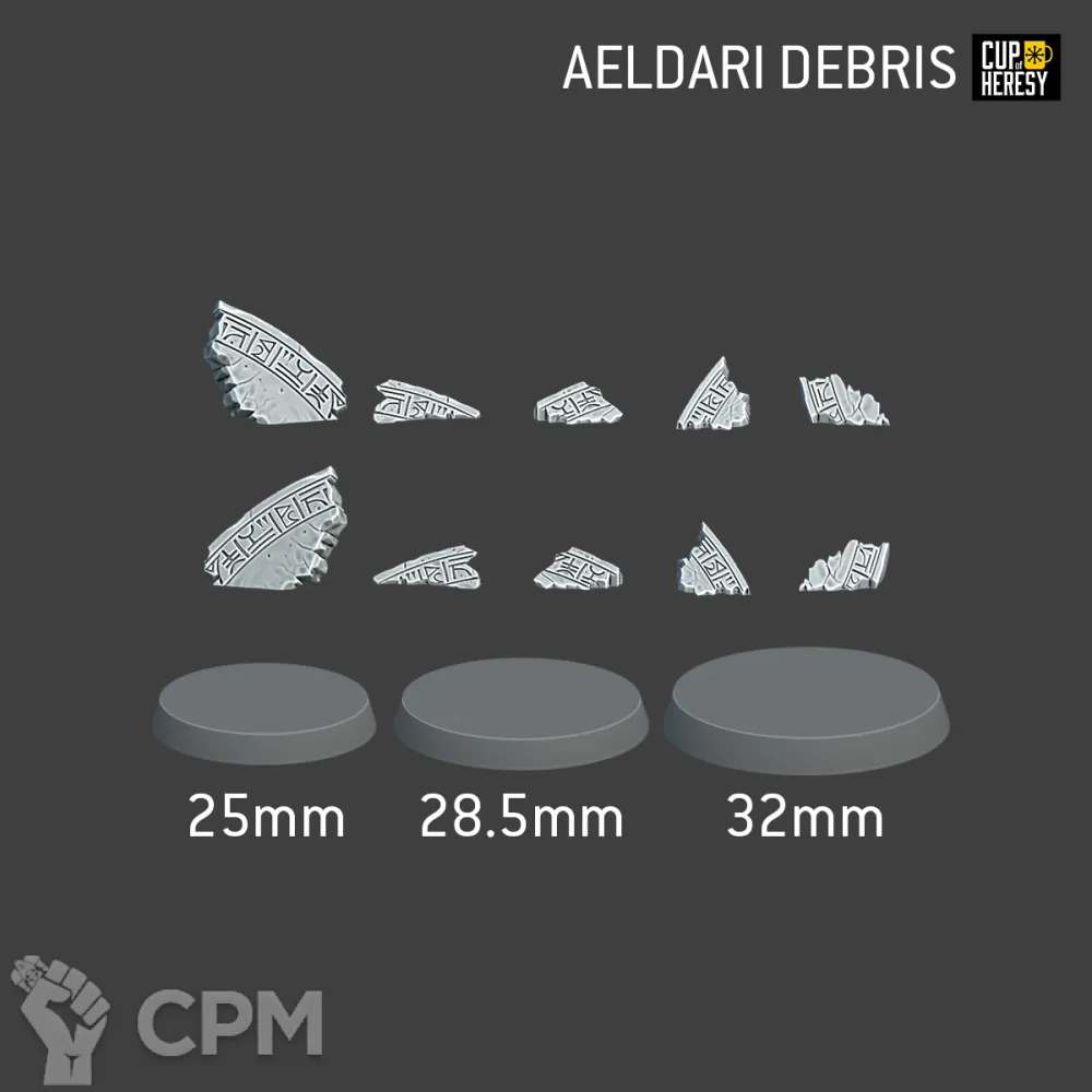 Обломки в масштабе 28мм для оформления баз стиле эльдар. Качественная печать из добротной смолы. В комлекте 10 (2 по 5 зеркальных) битсов. Базы приведены для масштаба и в комлпект не входят. Отправлю быстро и в надежной упаковке.
