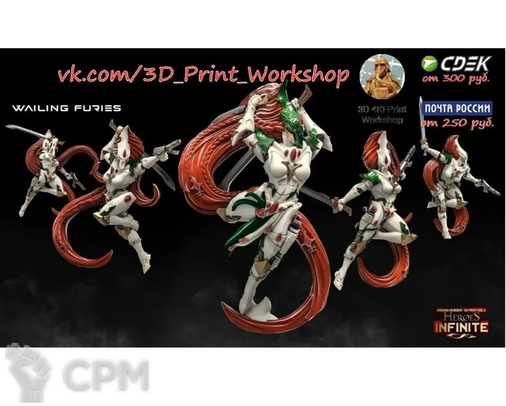 У нас высококачественная фотополимерная 3D печать (разрешение 4К, слой 0,025!!!) Миниатюры сняты с поддержек, промыты и засвечены. Цвет может отличаться от фото.